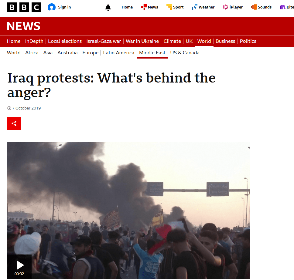 In October 2019, thousands of Iraqis protested against government corruption, unemployment, and poor public services.